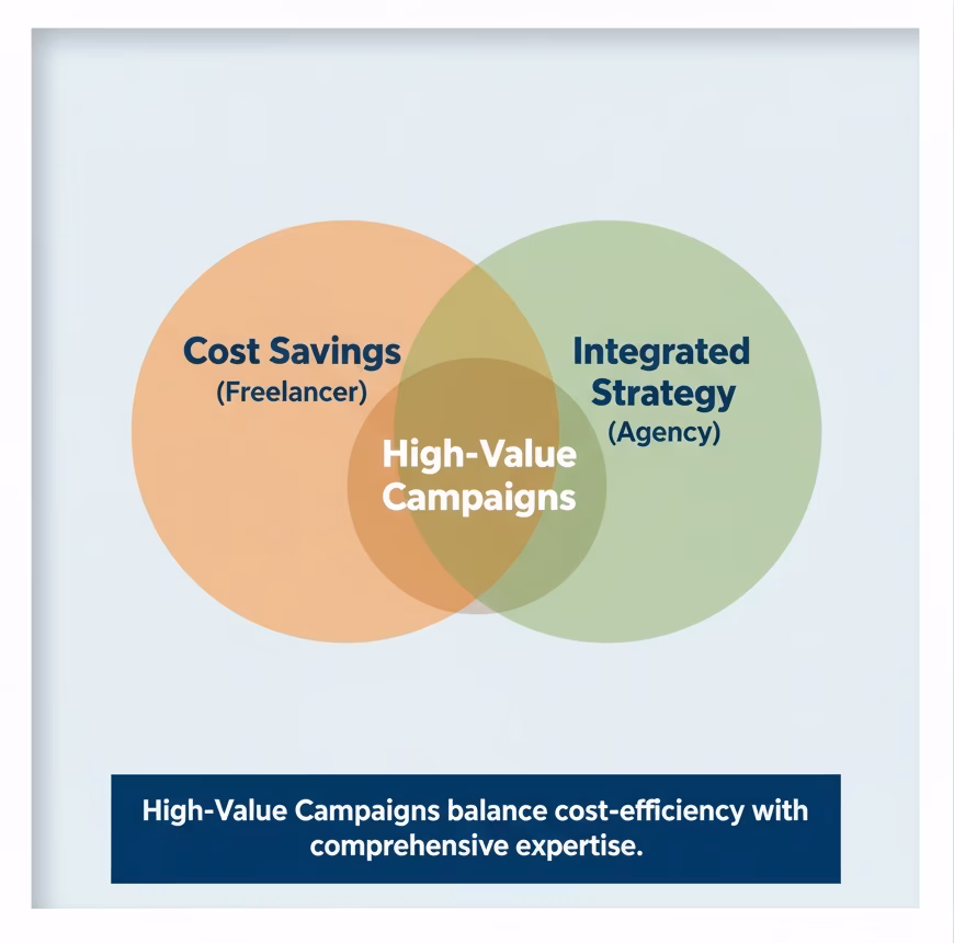 Your budget is small, and you only need help with one specific task (e.g., writing one blog post). | Your business needs an integrated, ongoing marketing strategy (SEO, Ads, Content). |
